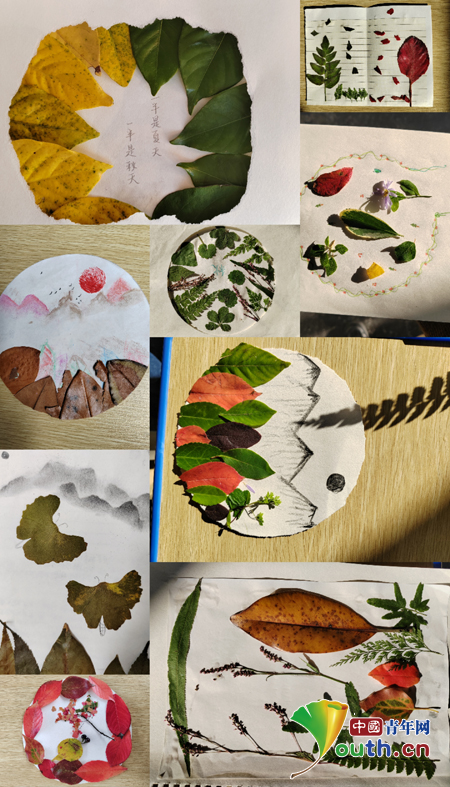 秋分时节,研支团成员组织学生捡拾落叶,引导学生绘制二十四节气树叶粘贴画。课堂中,研支团成员引导学生用不同方法观察,比较植物的叶子,发展学生们的想象力和创造力,用自己灵巧的双手制作出树叶画,用树叶来解读二十四节气。