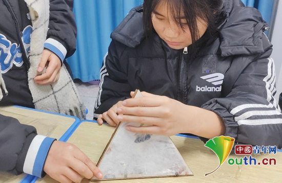 学生认真制作花灯。武科大研支团供图