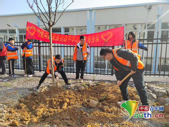 上午9时许,研支团成员抵达植树点,领好物资,拿好种树工具,便开始了植树活动。铲土、栽种、培土、浇灌……在共同努力下,研支团成员和沙道沟镇民族初级中学志愿者服务队共同种下一片新绿,为当地生态环境建设贡献一份力量。