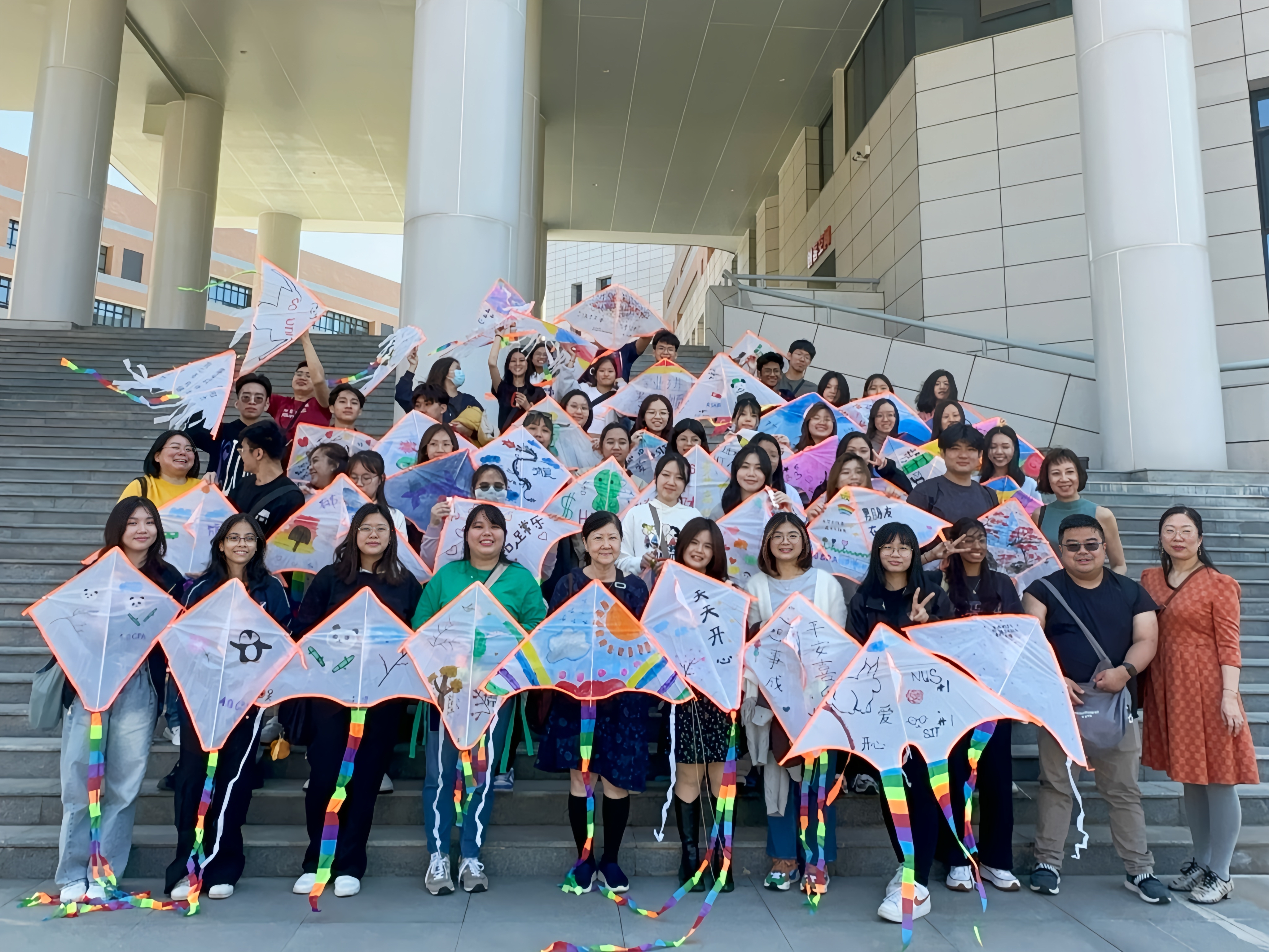 “风筝是古代中国春游的一大游玩项目,其图案都寓意着吉祥和对美好的向往。”新加坡师生们学习了风筝的历史和制作方法后,亲手制作了风筝并在室外放飞。“我在风筝上写了‘平安喜乐,心想事成’,画了最喜欢的投壶游戏!”“我写下了最爱的歌词‘都清醒都独立’,并画了彩虹,希望人生能五彩缤纷!”“我画了武科大的路牌和樱花,校园里灿烂的樱花让我眼前一亮。”……