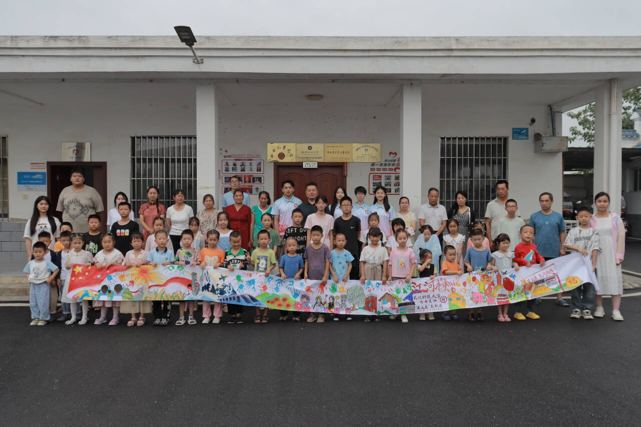 在十米长卷上,大学生与村民们共绘乡村振兴,光伏发电站、青山绿水、江河村“党建引领,共同缔造”的标语及其乡村振兴的丰硕成果。小朋友们手持五彩画笔,为自己的家乡涂上颜色。绘画完成后,江河村党支部书记吕志峰与全体成员共同在十米长卷上按上手印、合影留念。