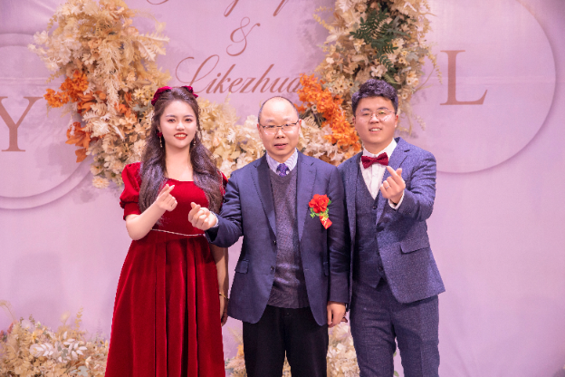 张海军教授(中)和一对新人。 受访者供图