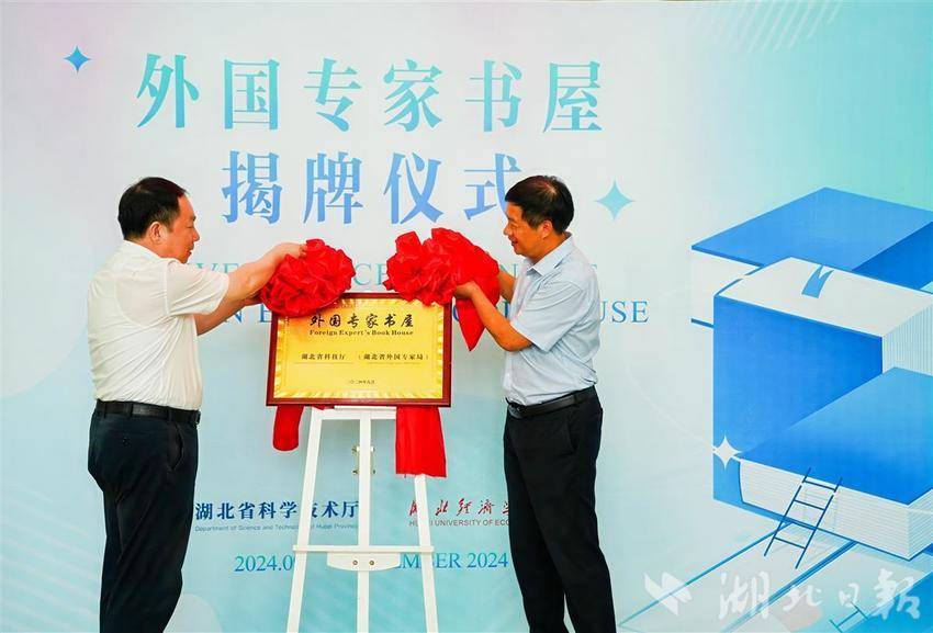 本次活动还举办了外国专家书屋揭牌仪式。在外专代表们的见证下,省外国专家局、湖北经济学院负责人共同为湖北经济学院图书馆“外国专家书屋”揭牌,首批8个语种的2500册图书上架。外国专家书屋由中宣部对外推广局推动建立,旨在为外国专家提供便利的阅读环境和阅读服务,以书为媒,加强文化交流,增进文明互鉴。截至目前,湖北省已建立外国专家书屋13家,覆盖武汉、襄阳、宜昌等7个城市,图书总量近45000册,涉及24个语种。