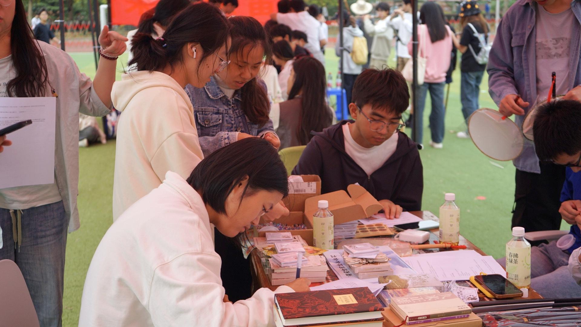 管理学院2024级新生黄奕对英语很感兴趣,开学前便了解到知行英语社。一早她就来到招新现场,在社团报了名,希望在其中提升自己的英语交流能力。“我的兴趣很广泛,还想可以加入滑板社和跆拳道,与志同道合的朋友们一起成长。”她说。马克思主义学院2024级新生张可心与朋友一起来到了招新现场,体验了许多社团小游戏。“大学生活真丰富!我也想参加自己感兴趣的外语社团。”张可心说。