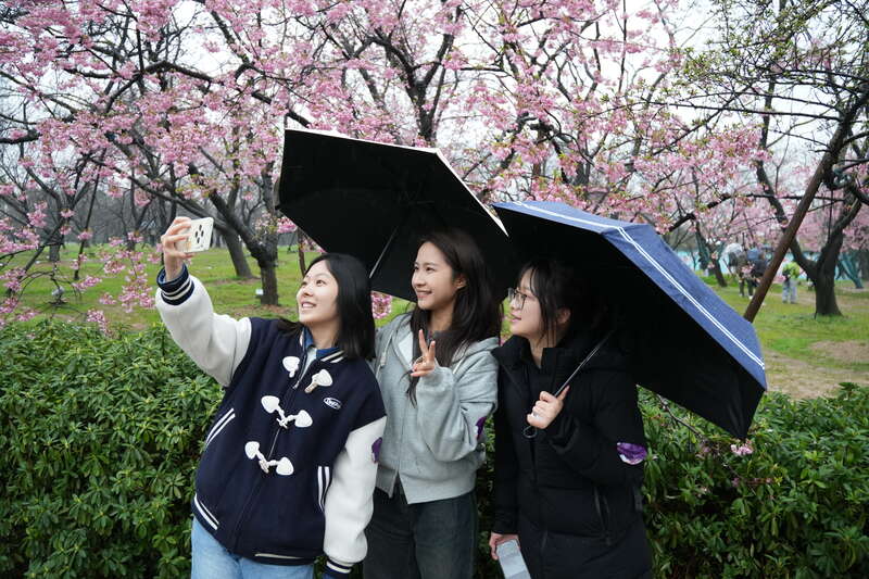 大学生们漫步东湖樱花园,体验武汉东湖生态之美。团武汉市委供图