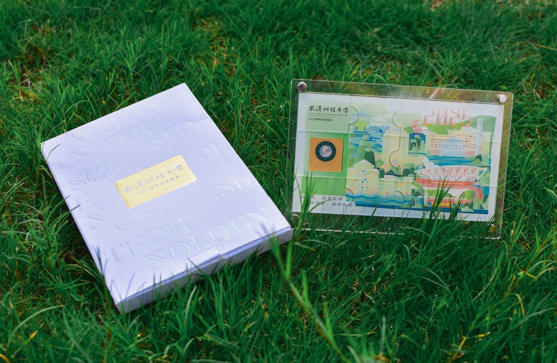 主楼、图书馆、谢师亭、沁湖体育馆......“精金百炼”拼图将校园标志性建筑串联,沁湖水、绿青山穿插其间,重现着毕业生初识校园的场景。拼图摆件中,有一块0.27克的真金拼图,压印着校徽及每位毕业生的学号姓名,作为每位毕业生的专属印记。“淬火成钢”礼盒从“青山绿”出发,顺着烫金“沁湖水”波浪,汇至 2025,记录了武科大自1898年至今的发展历程。