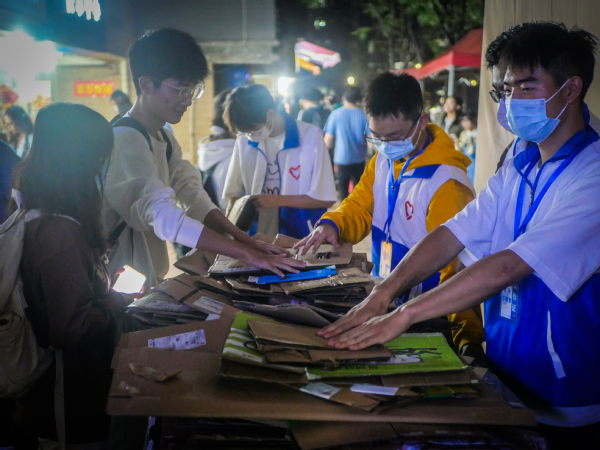 “我收快递比较多,每次都有很多废纸盒,如果当做垃圾扔掉的话也太可惜了。”材化2101班舒子瑞路过帐篷,了解到该活动,便赶快赶回寝室把一大捆纸盒捐送到帐篷。