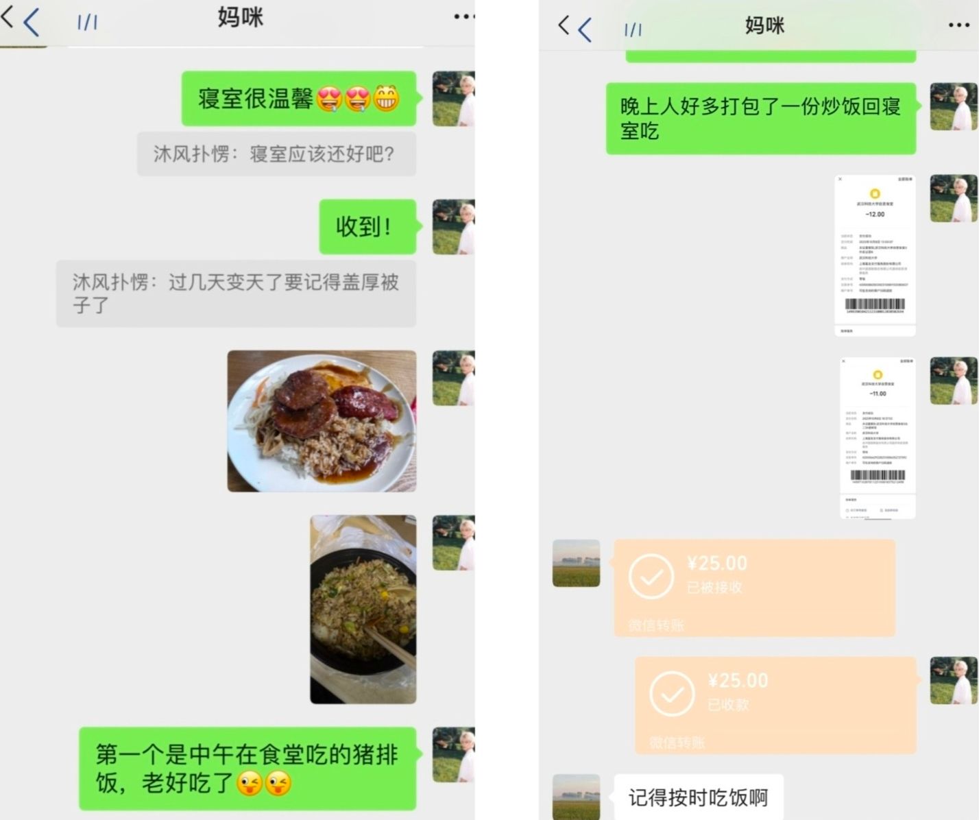 我校2022级学生高晨曦的母亲与他约定,除了每月固定发放1000元的生活费外,他还拥有一笔通过特殊方式获得的饮食费用,当他在每日三餐时进行拍照打卡并发送消费凭据后,他的母亲便会为他转账相应的餐费。“为了监督我规律地饮食,我妈才特地这样做的。”高晨曦解释道,“接下来,妈妈还打算跟我约定图书馆自习打卡奖励生活费等学习激励制度。”