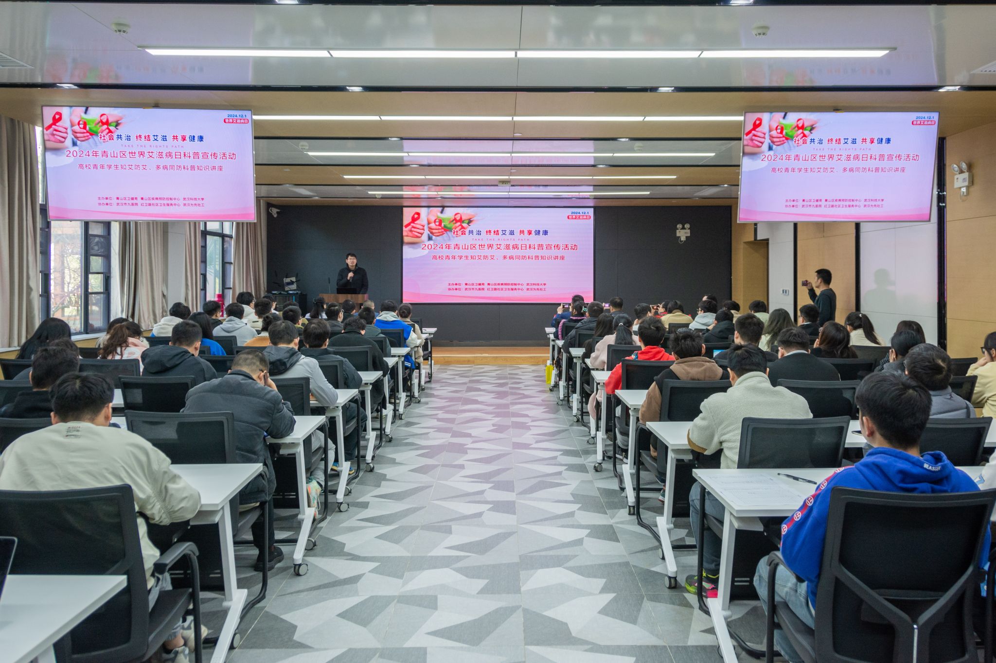 武汉市疾控中心艾防所所长杨小兵作了一场精彩的专题报告。他以艾滋病起源为切入点,深入浅出地讲解了艾滋病的主要传播途径、疾病危害、预防干预及相关防治知识。同时,他还延伸讲解了病毒性肝炎、猴痘等疾病“多病同防”的策略与核心知识,为我校师生带来了一堂全面而深入的健康教育课。
